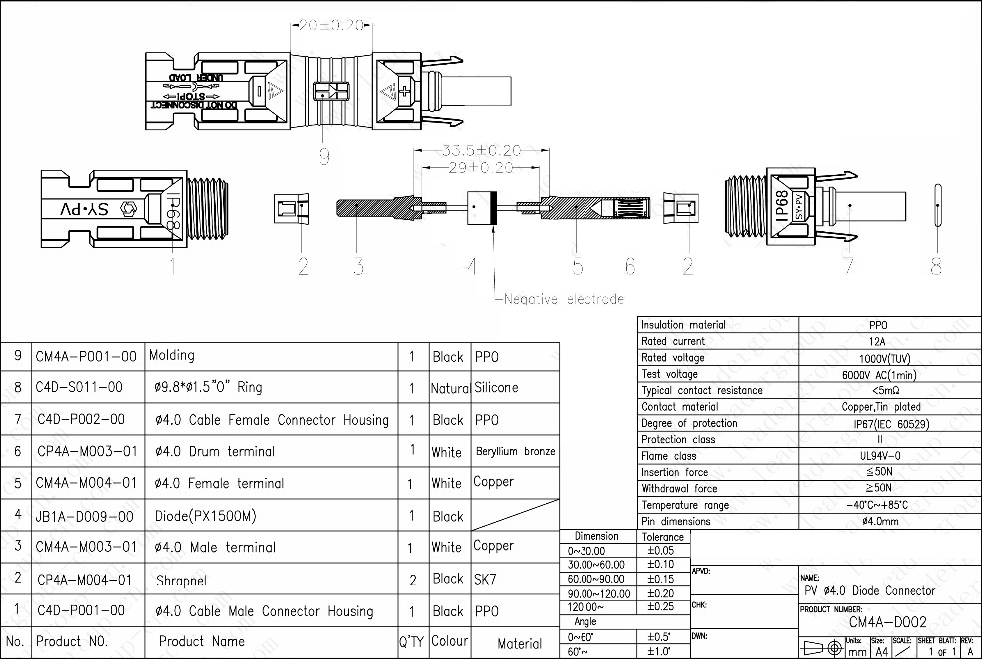 | Rango de Tamaño del cable | 2.5/4/6mm2 (14AWG, 12AWG, 10AWG) |