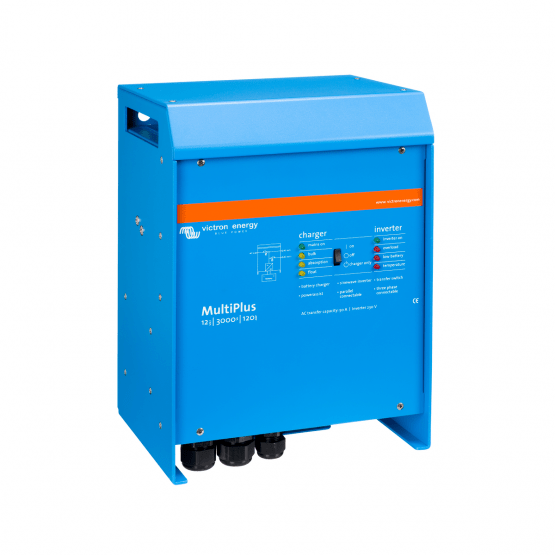 El MultiPlus, como su nombre indica, es un aparato que combina un inversor y un cargador en una sola y elegante unidad. Sus muchas características incluyen un inversor de onda sinusoidal pura, carga variable, tecnología PowerAssist híbrida, además de múltiples características para su integración en distintos sistemas. Los inversores Victron Multiplus cuentan con 5 años de garantía.