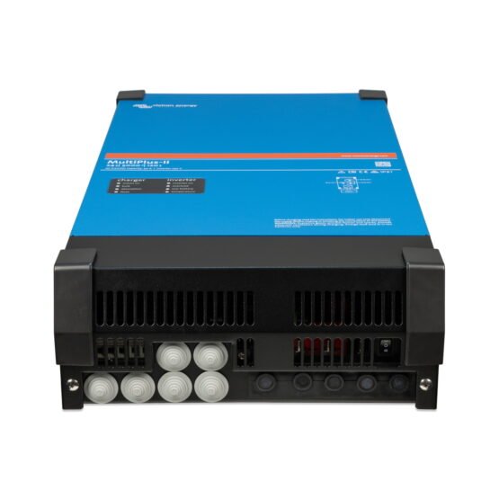 El MultiPlus-II combina un inversor y un cargador en una sola y elegante unidad. Sus características incluyen un inversor de onda sinusoidal pura, carga variable, tecnología PowerAssist híbrida, además de múltiples características para su integración en distintos sistemas. Este inversor tiene todas las características del MultiPlus y además la opción de optimizar el autoconsumo con sensor de corriente externa, anti isla integrado y una lista cada vez mayor de países que ya lo han aprobado. Los inversores Victron cuentan con 5 años de garantía.