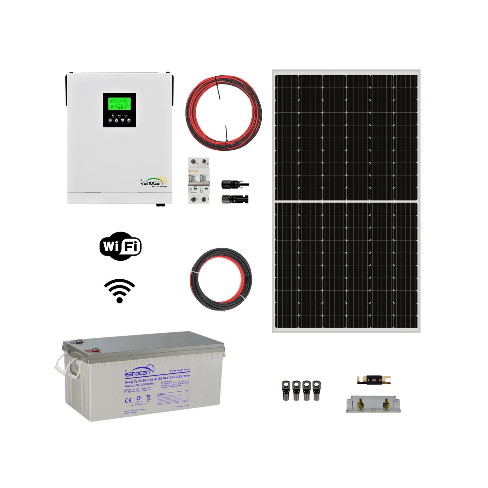 - Salida de onda senoidal pura de 1500w con energía FV y batería, 1200W solo con batería.