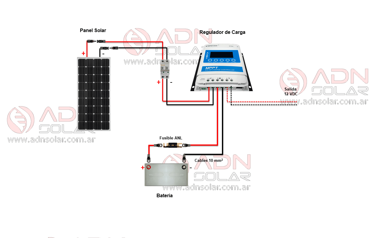 - La corriente pasa por el regulador de carga solar y es almacenada dentro de las baterías.